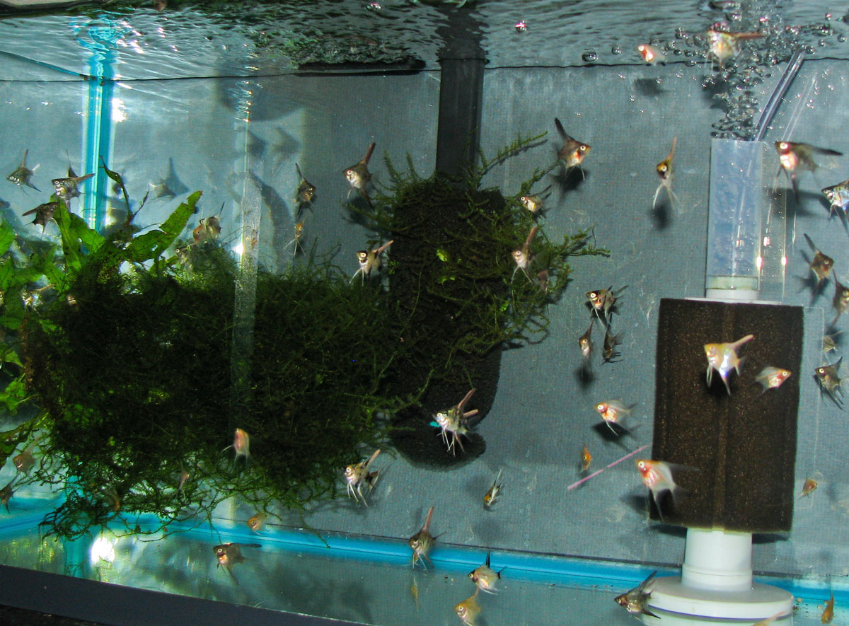 Finished fry tank with juvenile angelfish: